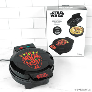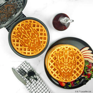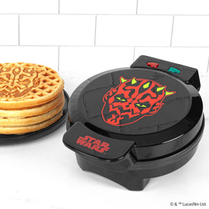 Ignite your breakfast with the Star Wars™ Darth Maul Waffle Maker! Create waffles inspired by the iconic Darth Maul, perfect for fans of the Dark Side of The Force. Whether you like them brown and crispy or tender and golden, the regulated thermostat and weighted lid ensure even heating, while the dual indicator lights tell you when to add batter and when your waffle is cooked. More than just a waffle maker, you can also cook up eggs, brownies, cakes, quesadillas, or even pressed sandwiches. The waffle maker is compact, easy to use, and easy to clean, thanks to nonstick plates.