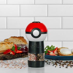 Level up your meals with the Uncanny Brands Poké Ball Salt & Pepper Grinder! With dual spice chambers and one-touch grinding, it delivers effortless seasoning with an LED light that turns on automatically while dispensing. The adjustable grind lets you go fine or coarse to suit every dish. Catch 'em all with this sleek and compact unique kitchen gadget!